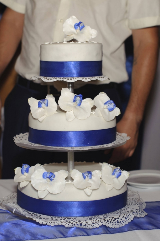 A kék a tisztaság, az ártatlanság, a hűség jelképe, mint Brigiék esküvőjén a kék színű Orchidea hajdísz és az esküvői torta díszítése.
