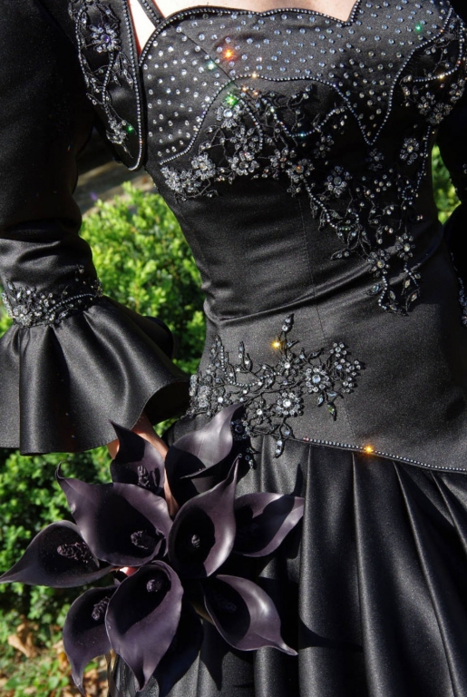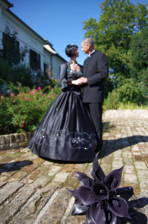 Egyszerű, mégis sejtelmes, izgalmas látványt nyújtott ez a fekete színű Kála körcsokor, melyet Judit és Attila kérésére alkottam meg.