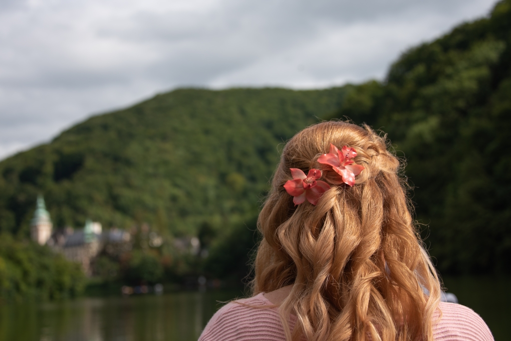 Vintage csokor lazac színű orchideával